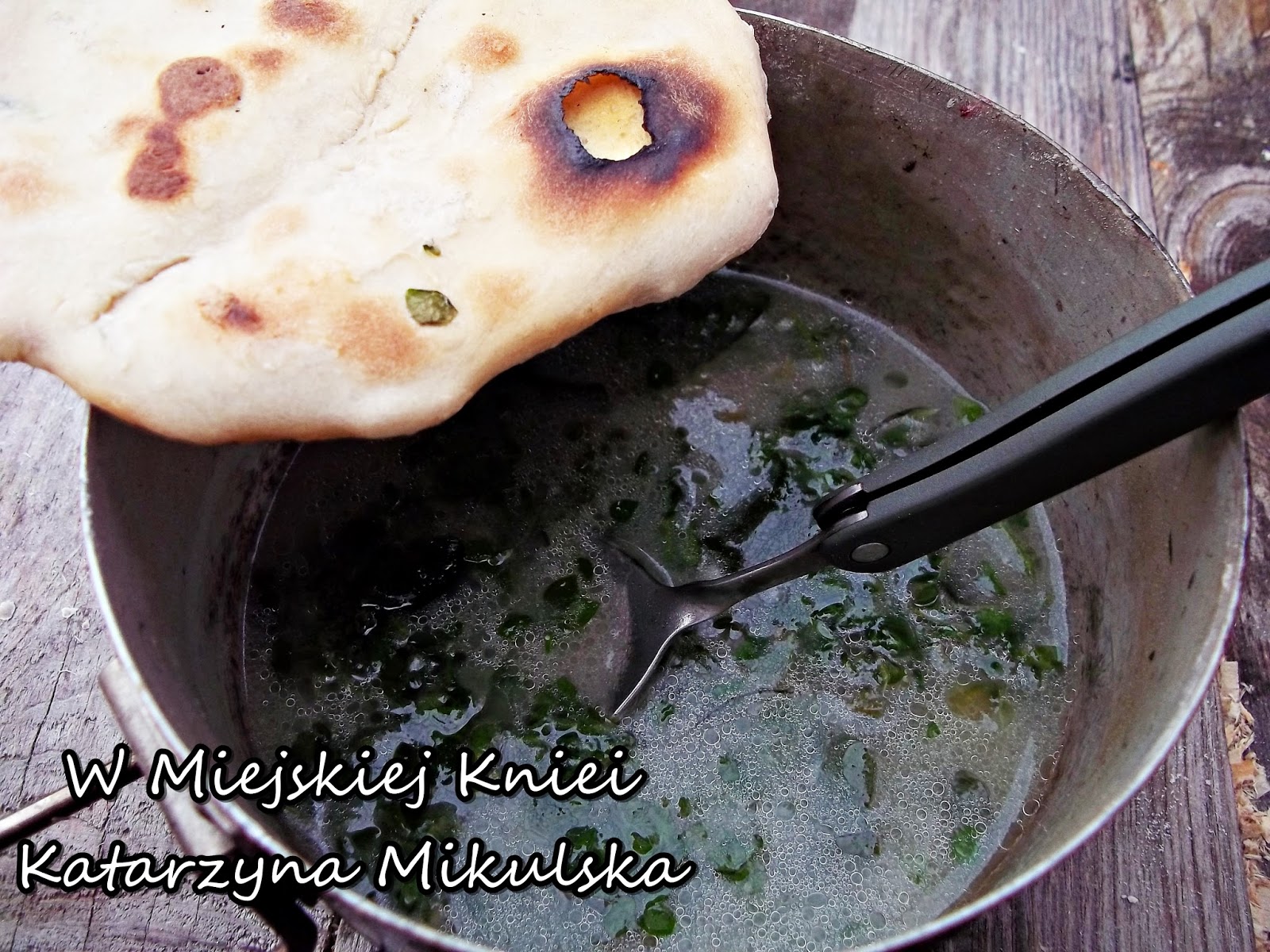 I tym sposobem powstała gęsta zupka :) Idealna do podpłomyków. Jak macie w plecakach pieprz, lub dostęp do rdestu ostrogorzkiego śmiało doprawcie potrawę :)